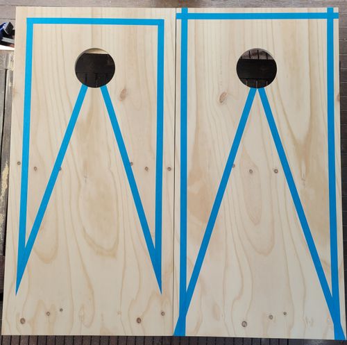 I then taped up the design on the top, using painters tape. I opted for a triangle design with a border for both boards, but with an alternate deisgn between them.