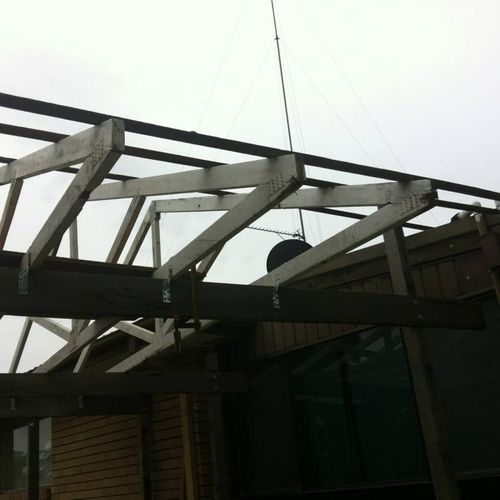 Modifying some of the trusses as they were rotten in sections but mainly because of the angle of the house roof verse the angle of the deck.