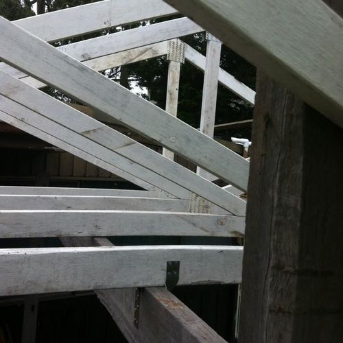 The trusses were not particulary heavy being pine. I was a little conceerned about the type of timber but it was too good a chance at $120 for the 6 of them. (remember it was a 11 years ago)