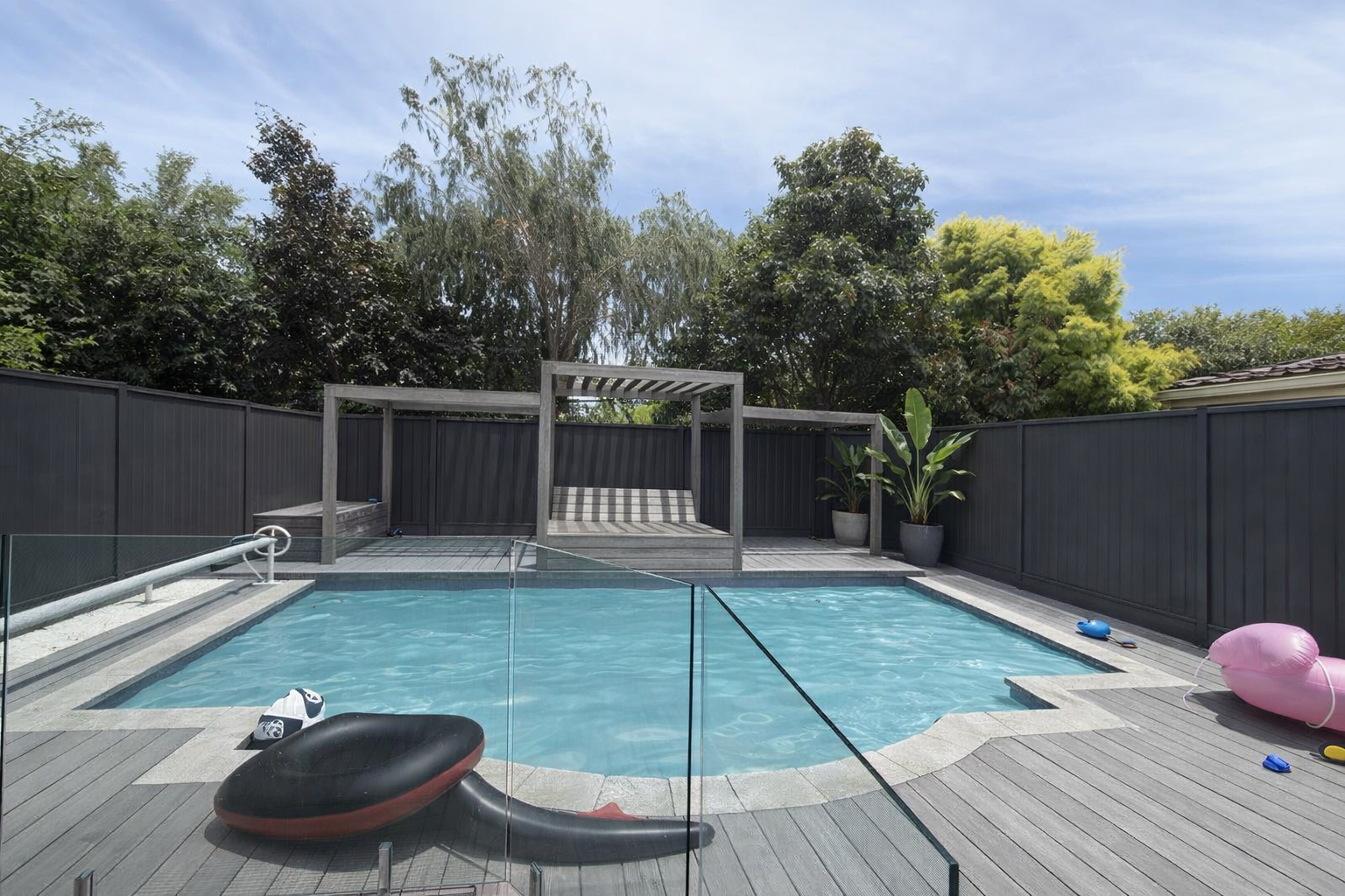 With the bamboo panels, removing them will already modernise the space. If there is beige Colorbond fencing underneath and it is in reasonable condition, you do not need to replace it straight away. Colorbond can be repainted successfully using the right system. It should be thoroughly cleaned, lightly scuffed with a fine abrasive pad, then primed with a suitable metal primer before applying an exterior metal paint. Moving it to a darker charcoal or soft grey will help it visually recede and make the pool area feel more contemporary without competing with the timber. Spraying gives the best finish, but rolling is absolutely fine for a DIY job if done carefully.