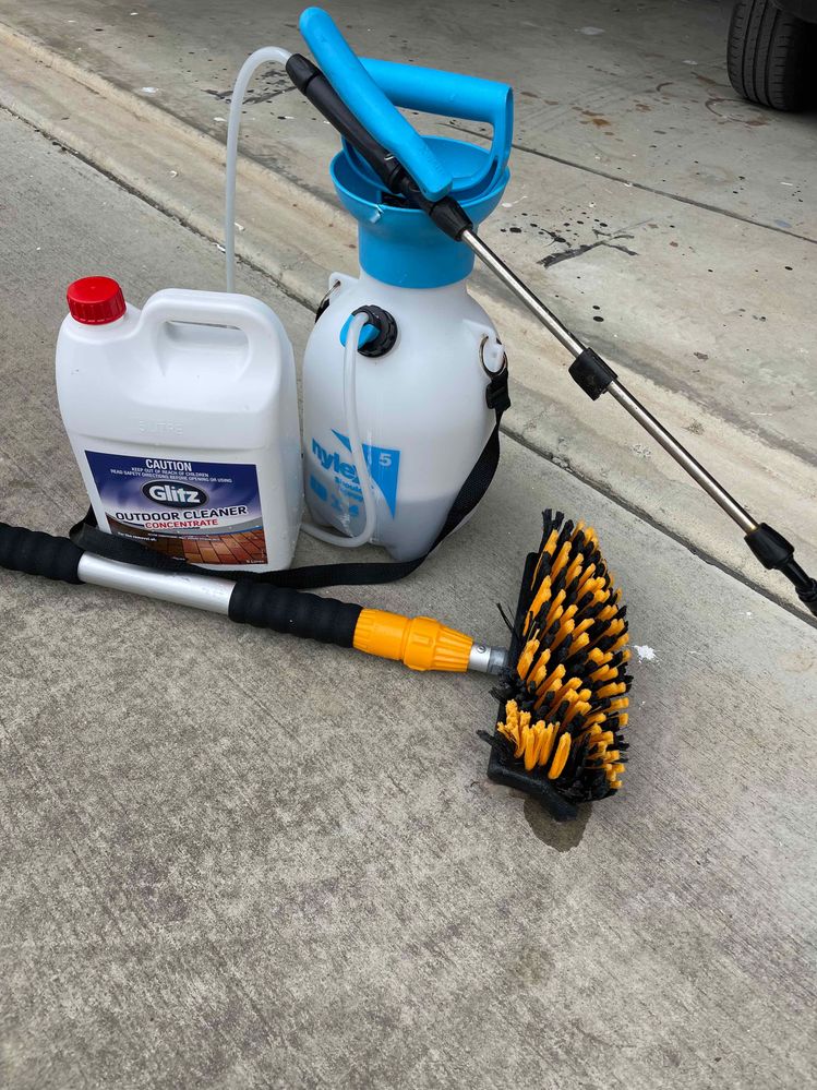 Prep was done by spraying with exterior surface cleaner then a wash-down with telescopic, hose-connected brush.Prep was done by spraying with exterior surface cleaner then a wash-down with telescopic, hose-connected brush.A 'delta' head fitted to a multi-tool is ideal for sanding timber trim and fiddly spots.A 'delta' head fitted to a multi-tool is ideal for sanding timber trim and fiddly spots.The easy way to get stubborn lids off plastic paint buckets! A knee firmly in the centre and peel one edge of the lid back.The easy way to get stubborn lids off plastic paint buckets! A knee firmly in the centre and peel one edge of the lid back.Use a small brush to get into all corners and cracks before rolling but don’t do too many areas at once otherwise the brush-work will dry, and then show, before you can roll it smooth.Use a small brush to get into all corners and cracks before rolling but don’t do too many areas at once otherwise the brush-work will dry, and then show, before you can roll it smooth.For longer areas set-up a plank (you can hire them) rather than constantly moving and climbing ladders. Note – this plank was 5m but it can only be used at a maximum span of 3m so I added a small step ladder as centre support.For longer areas set-up a plank (you can hire them) rather than constantly moving and climbing ladders. Note – this plank was 5m but it can only be used at a maximum span of 3m so I added a small step ladder as centre support.For textured or contoured exterior surfaces use a long nap roller sleeve, nap is/are the filaments on the roller. This one was 15mm nap. Longer nap will work well on contours.For textured or contoured exterior surfaces use a long nap roller sleeve, nap is/are the filaments on the roller. This one was 15mm nap. Longer nap will work well on contours.Use a smaller roller, here 100mm, for edges. This was a long nap too and you can see it conforming to the shape of the weatherboard. And don’t forget to use making tape where needed. It’s faster to mask than to fiddle around painting edges.Use a smaller roller, here 100mm, for edges. This was a long nap too and you can see it conforming to the shape of the weatherboard. And don’t forget to use making tape where needed. It’s faster to mask than to fiddle around painting edges.Do any gap sealing AFTER your first coat of undercoat or paint. You’ll find it much easier to see the gaps.Do any gap sealing AFTER your first coat of undercoat or paint. You’ll find it much easier to see the gaps.If you need to be using your gap sealer over an extended time and it’s a water-based product then put it in the shade with a damp cloth loosely wrapped around the nozzle when not in use.If you need to be using your gap sealer over an extended time and it’s a water-based product then put it in the shade with a damp cloth loosely wrapped around the nozzle when not in use.