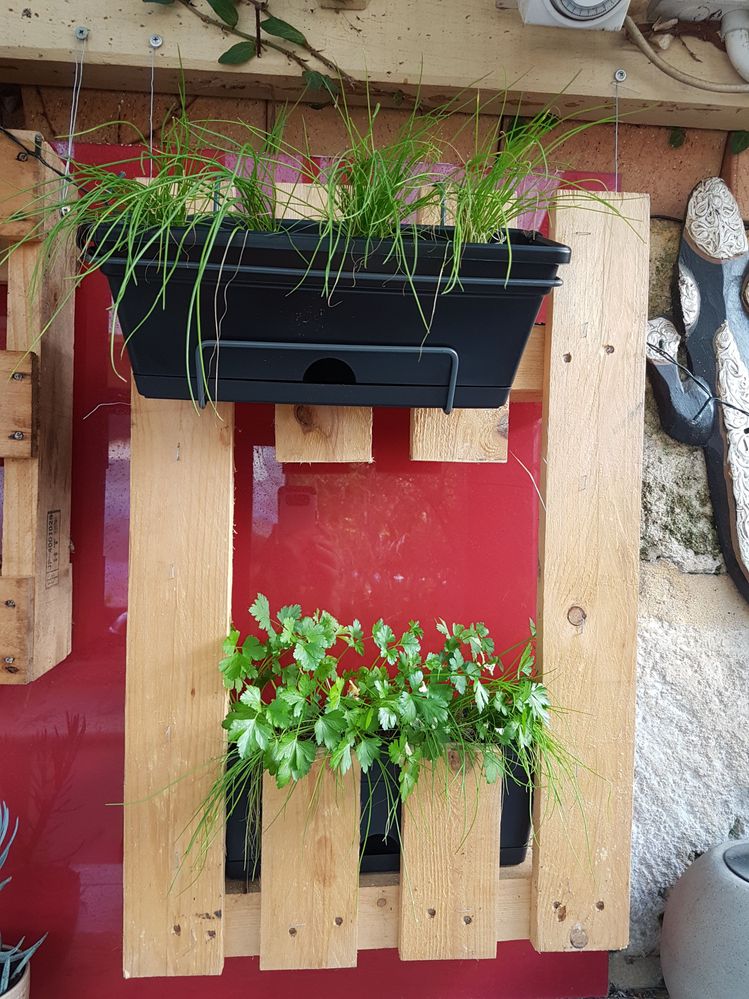 Love the rustic look @Carol_Prime  I have recently hung the same pots but off sheep yard mesh, with strawberries in my pots.