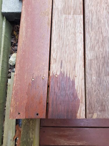 Hey @MitchellMc thanks for your reply! So far we've used Cabots deck cleaner and this is where it's at. I then did a patch with Cabots Natural Decking Oil in Merbau to see if we could get away with not sanding - I've uploaded a picture of that as well. Interestingly, it hasn't dried on the board with remaining stain. But it was 8 degrees overnight last night so I'll let it sit this morning. But chances are we will go down the sanding path