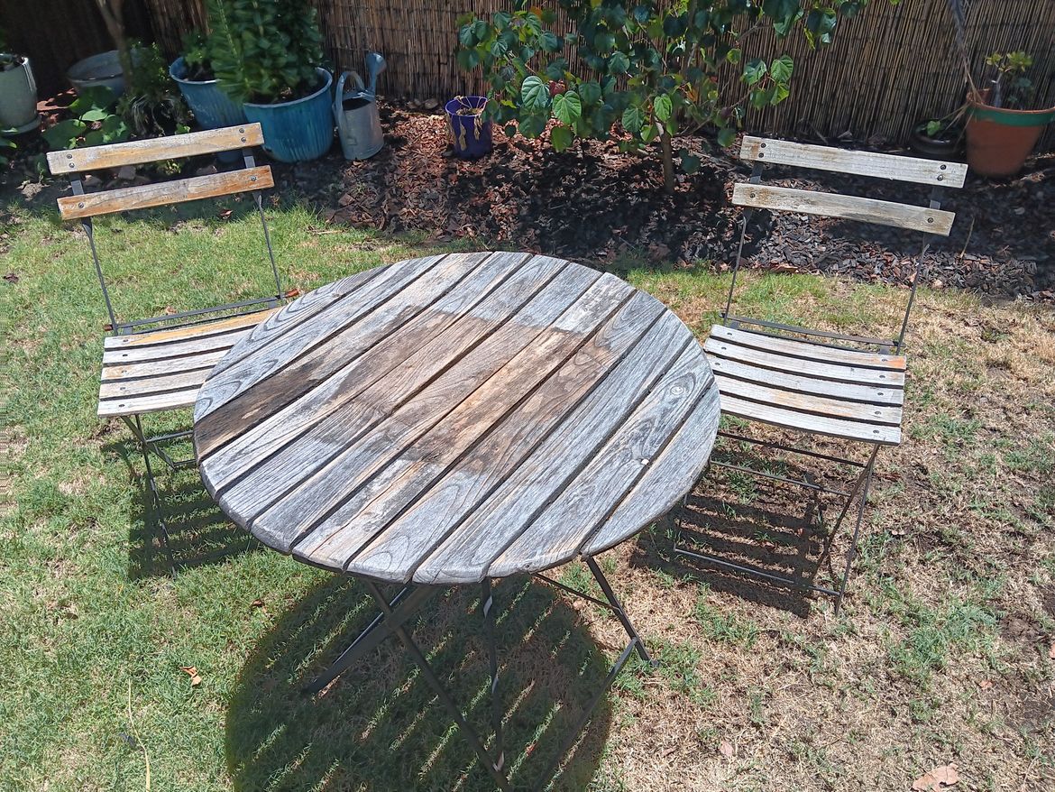 Thanks for sharing your refurbished outdoor table set. It looks fantastic, in regards to the metal legs, I suggest using White Knight Rust Guard 400g Cold Gal Spray Paint if you want to keep the dark colour of the steel.