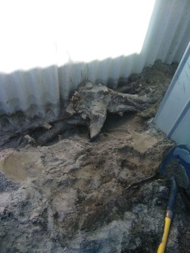 After some research, I realised it was inevitable they would grow back, so started the process of root removal with a cheap electric chainsaw and shovel .Seem to be coming off two main root clumps.