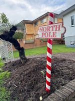 I painted up some drainpipe from one of my neighbour's pool business spares as the North Pole. Completed with 3D printed lettering (the kids had fun rearranging...) and solar lights: