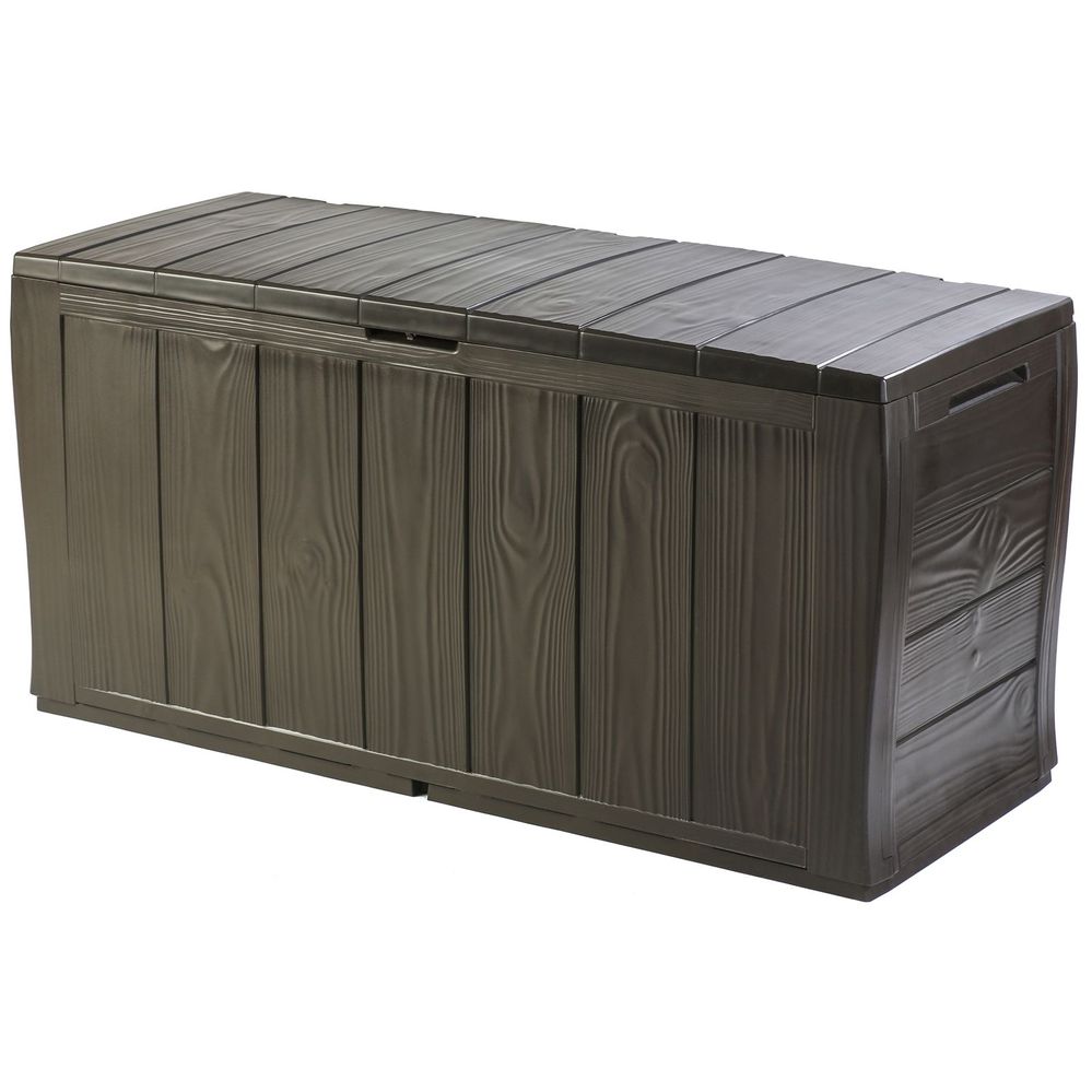 3. Put your pool chemicals and childrens toys in a keter storage box. Its timber design should go well with your decking.