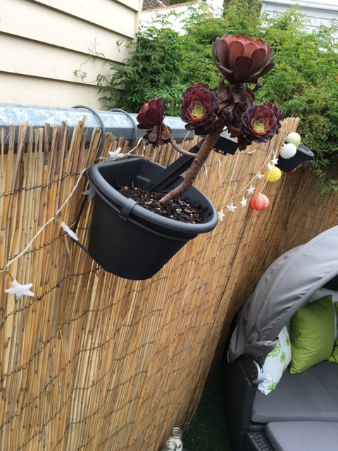 There were some pretty ugly looking fence panels that were light green which we wanted to cover up. We did this really cheaply with some reed screen fencing (we didnt quite have enought - grrr!) and they are held up with the Garden-Up pots that are filled with succulents that need minimal care! We decided to keep our lights up after Christmas as they looked so pretty at night.