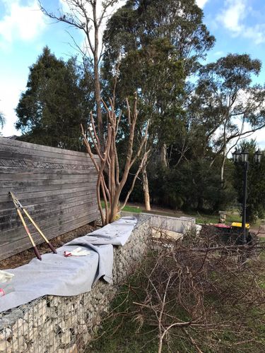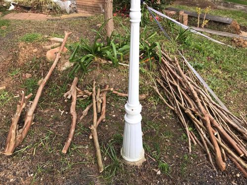 Crepe myrtle prunings then repurposed and trimmed down to go into the base of the berms to give body and long term nutriants to it.