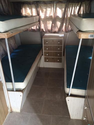 Hi there, have just found this discussion thread and your caravan looks just the same as mine! Wondering if you know what year/model it is as I have no info on mine. I haven't seen any other caravans with the two rear porthole windows and was thrilled to see yours had a bunk bed so I'm guessing mine used to as well, although probably on both sides as I have portholes on both sides at the rear. Same configuration inside which I'm also looking to do up as close to original as possible. Any info would be appreciated. Cheers!