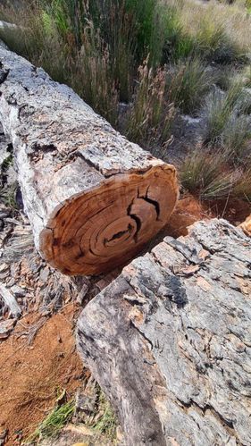 Fallen Northcliffe Marri tree from our down south block. Up to 810mm in width, with layers of water shakes and sap veins. It has been resin filled and matte varnished for our wedding signing table. Engraved initials on the underside in true lovers style.