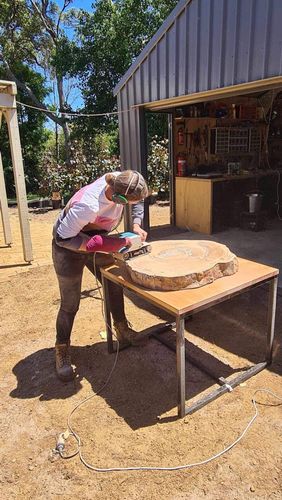 Fine sand top and bottom of the Marri round to ensure visibility through the resin areas.