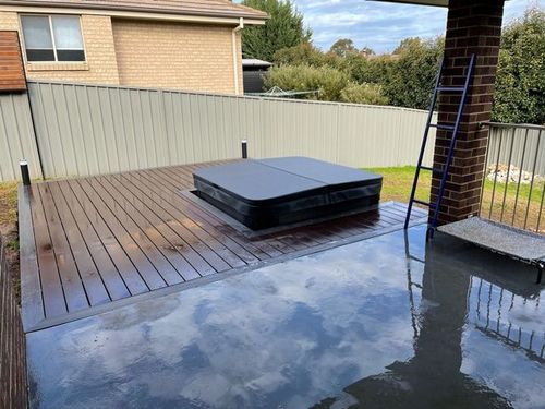 Thank you for posting a picture of your decking project. Are you using Ekodeck for your follow-up decking project? If you are, you can deduct the thickness of the panel from your available space. For example, if your available space is 90mm, less 23mm which is the thickness of the decking panel. That leaves you with 67mm usable space. If you allocate 10mm for adjustment for height, that will then leave you with 57mm.