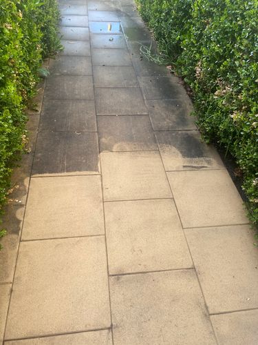 I have this front walk way which I tried to clean it by scrubbing with a brush and clothes detergent.