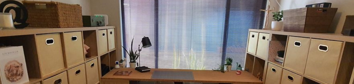 Given the rise in flexible working, a home office is a popular way to use a spare room. Lyn (@LynThomson17)’s home office features plenty of desk and shelf space, along with a timber feature wall.