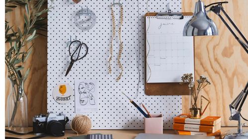 Use a pegboard to organise your home office essentials by utilising wall space. The Bunnings team shares a detailed guide in How to make a home office display.