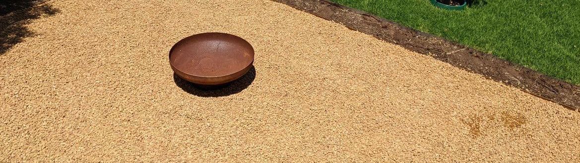Weed matting under cottage stones was used to make this outdoor fire pit area.