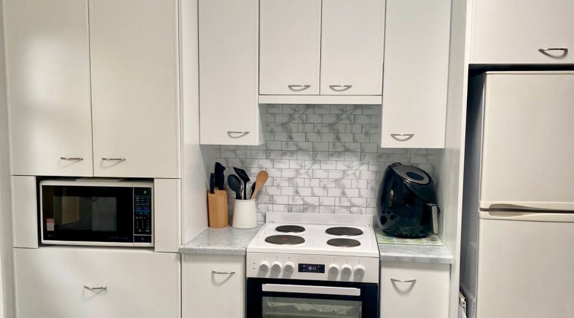 Workshop member Ari painted his original 1995 kitchen using White Knight Tile and Laminate paint and found the transformation process easy.