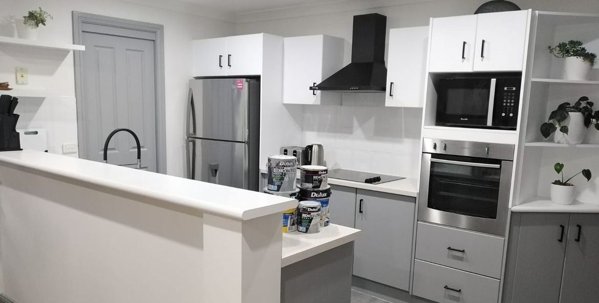 Using the Dulux Renovations Range and an Ozito paint sprayer, Nicole transformed her rental property's kitchen for just a few hundred dollars.