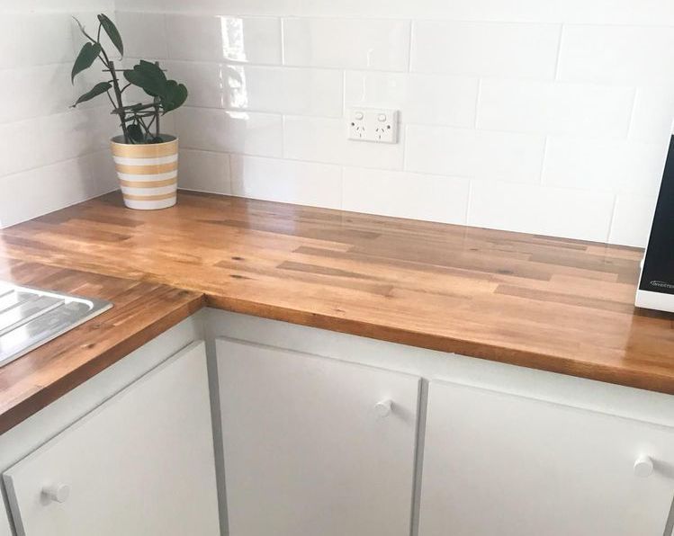 9. Kitchen makeover using painted cabinets, new tiles and benchtops by @WoodenGregsWood