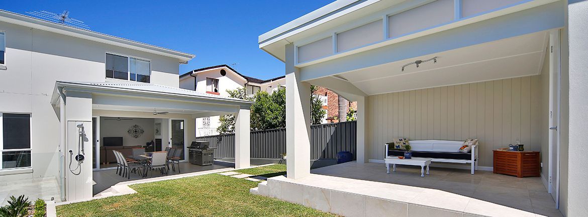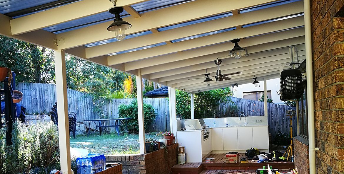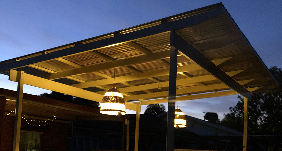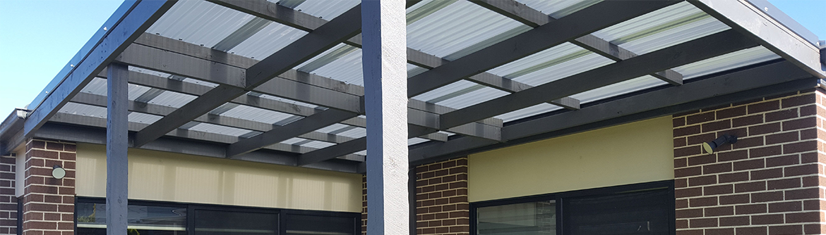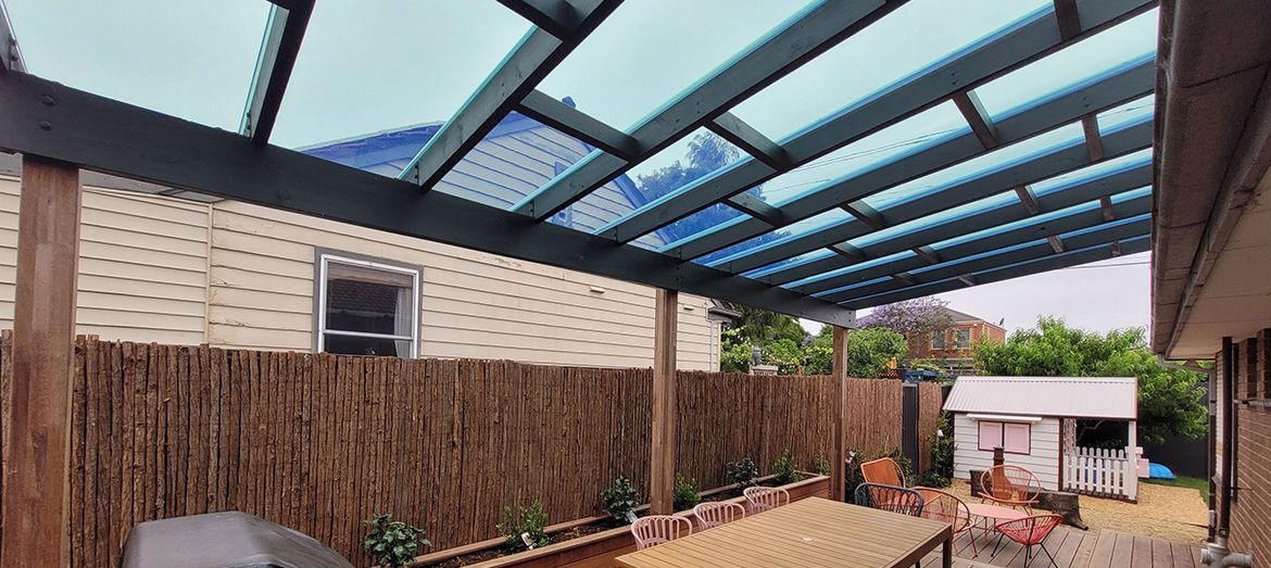 A pergola with polycarbonate roof sheeting to significantly extend an outdoor entertaining area that blended well with the existing home.