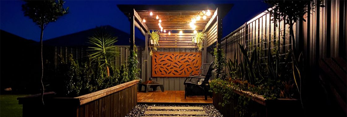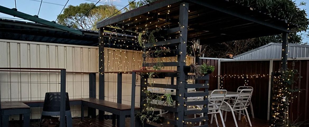 An eye-catching pergola project with decorative panels and outdoor lighting that has inspired plenty of Bunnings Workshop community members and visitors alike.