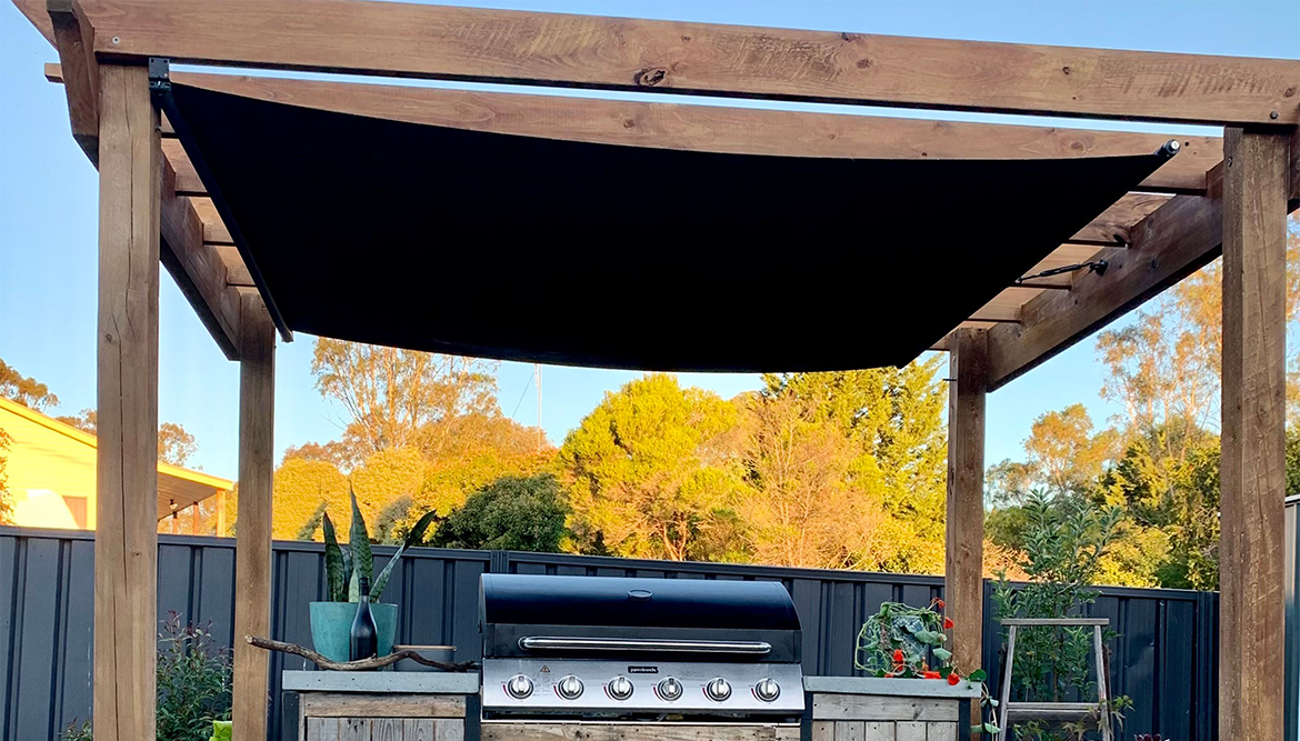 Sandy created a pergola over an existing concrete slab using treated Pine and attached a retractable outdoor blind to provide shade to this outdoor entertaining area.