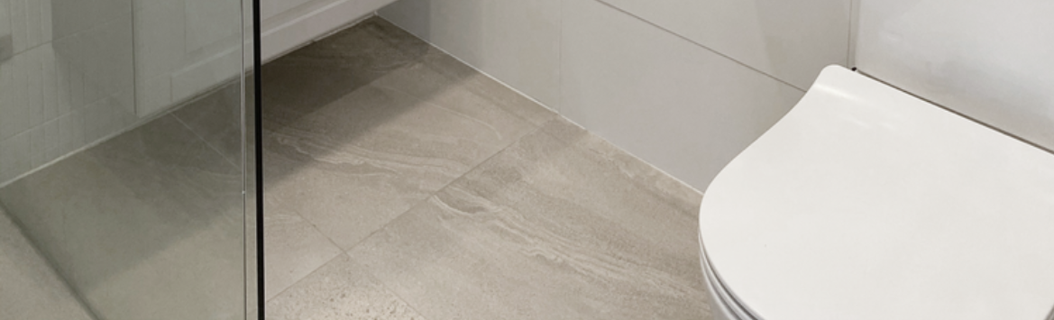While renovating her ensuite bathroom, Aletheia (@homeinmelbourne) replaced her dated cream tiles with grey large-format floor tiles, making the space look brighter.