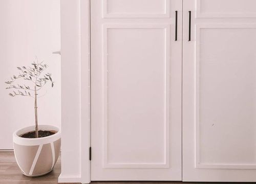 Member sjloves attached plain skirting to their pantry doors with a fixing gun. An easy and inexpensive way to refresh your pantry.
