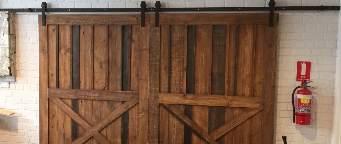 These barn doors were utilised to screen an unused entrance and create a rustic feature at a cafe.
