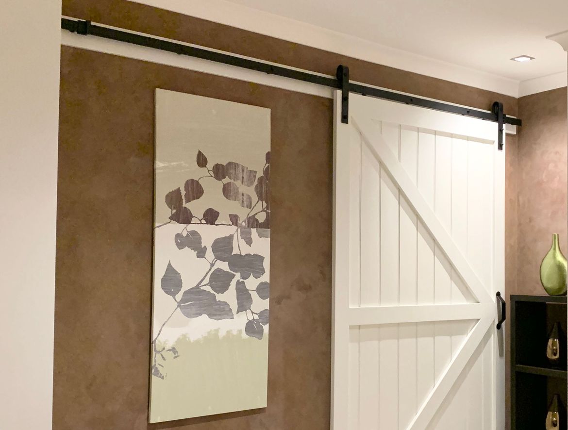 Riley joined two barn doors together to slide in one direction and cover a wide entryway.