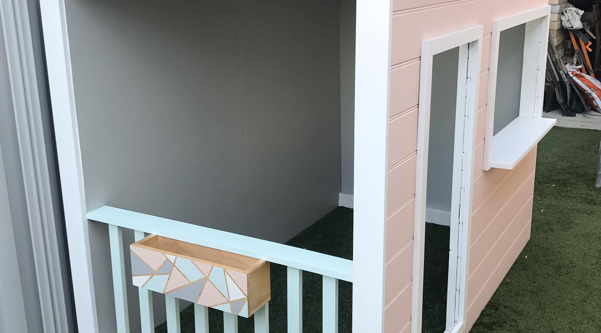 Pete created a bespoke cubby house featuring tongue-and-groove cladding, a custom picket fence and even a planter box.