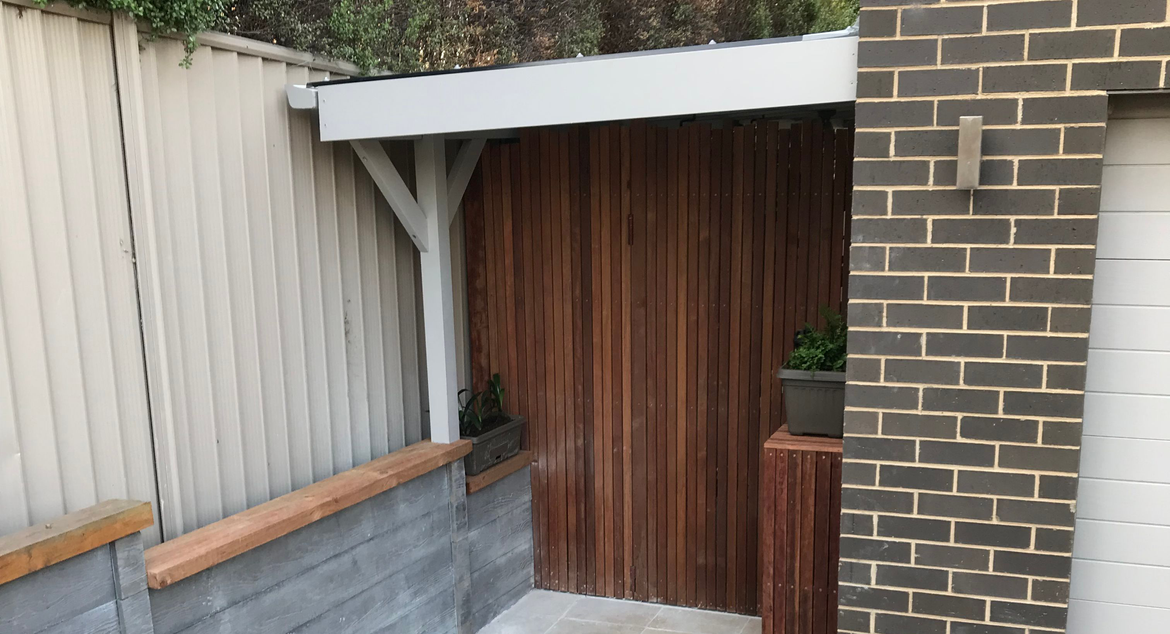 Colorbond fencing and Pine frames were used to build a gazebo for this outdoor entertainment area.