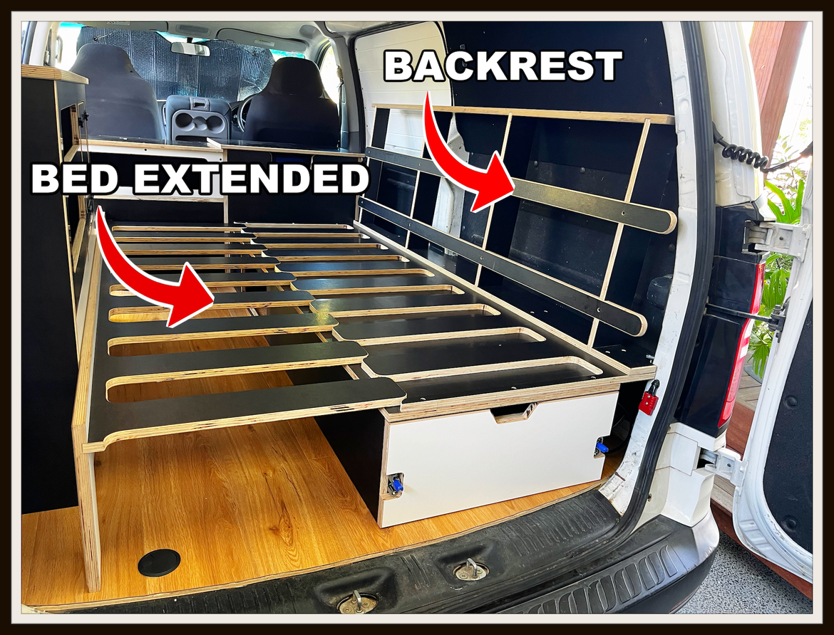 The backrest is a game changer for the pull out bed. You can actually sit in the van comfortably without your head hitting the ceiling!