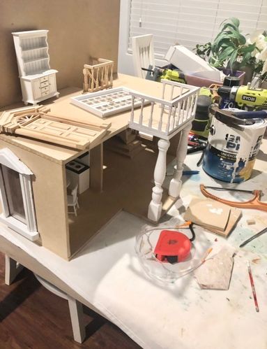 The door frames, front windows, staircase and railing I purchased off Amazon & eBay, aswell as most of the furniture & accessories. Some of it I made using either wood or clay.