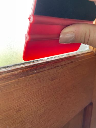 7. Smooth out the film using the window film applicator (scraper). Peel the rest of the backing off as you work your way down