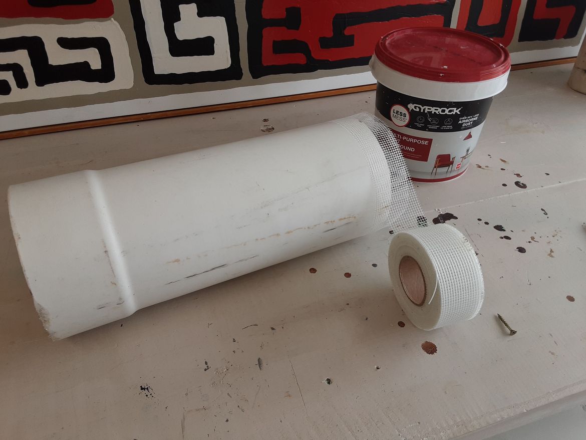 Multi purpose joint compound over pipe (both available at bunnings) and allow to dry