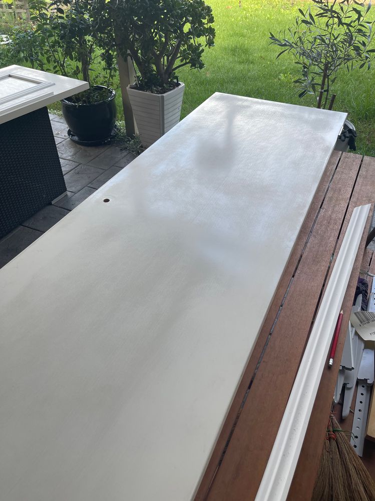 Now that the doors were sanded, I gave them another wipe over with a clean cloth before proceeding to give them a base coat. I chose to use the same base coat we use for all our projects which is the Dulux 1Step prep.