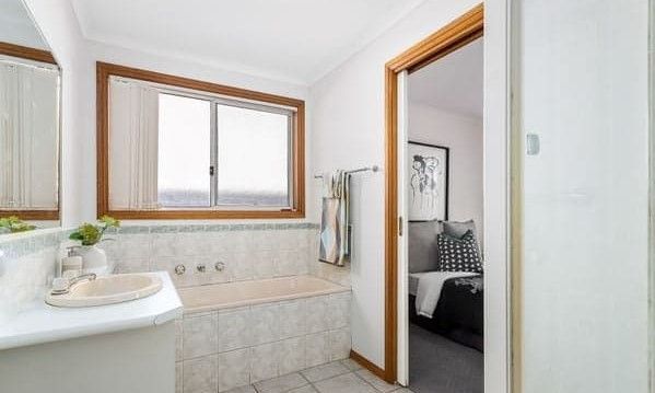 Bathroom and laundry tiles were painted using the Rustoleum Tile Transformation kit and the taps were replaced with sets from Bunnings.
