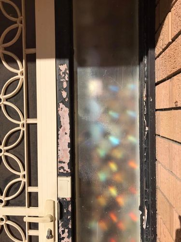 The paint was flaking on my front door, I could use my fingernail to remove the paint and couldnt see a way of fixing it. So the paint had to come off the door. The door frame had severely flaking paint back to the timber. So this also had to go. The screen door was the old style cream door and the flyscreen mesh was perishing in places. All in all everything needed to be brought back to spec.