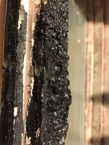That black piece hanging in the air is actually a length of paint removed with paint stripper..
