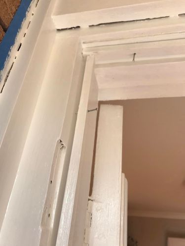 I had purposfuly left the nails in the trim to make it easier to align the timber where it was before I took it off.