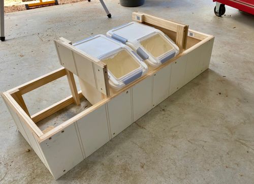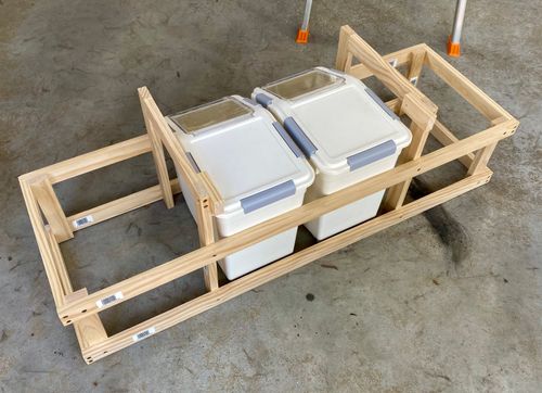 Using the same timber and screws, next build two additional frames to house the pet food containers.