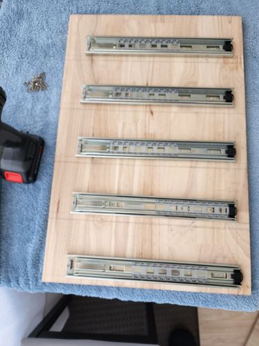 Mounting the drawer slides was a bit tricky. I mounted the drawer slides slightly below the centerline, vertically centred. This would allow the slides to run smoothly without fouling the drawers below.