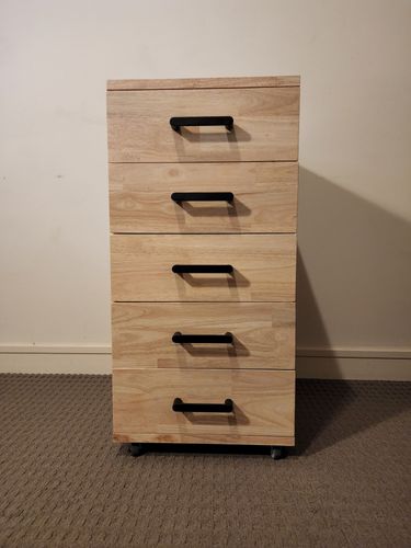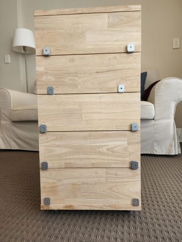I used screw caps to cover the screw heads. Finally, mounted 5 Move It 30mm 20kg Grey Swivel Plate Castor - 2 Pack wheels on the bottom of the cabinet.