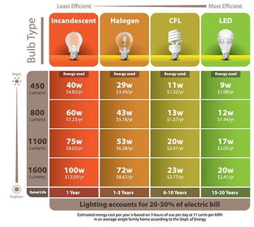 so from that chart you can see the comparison between the watts of the globe required, the cost to run for the desired light output in lumen.