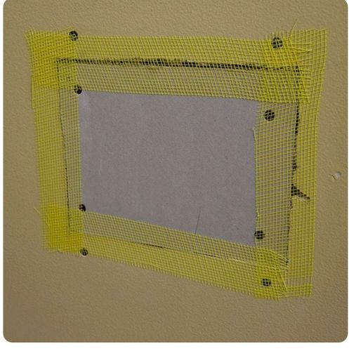 This same process of using timber to back block the patch, installing plasterboard, plastering and painting could be used in your situation.