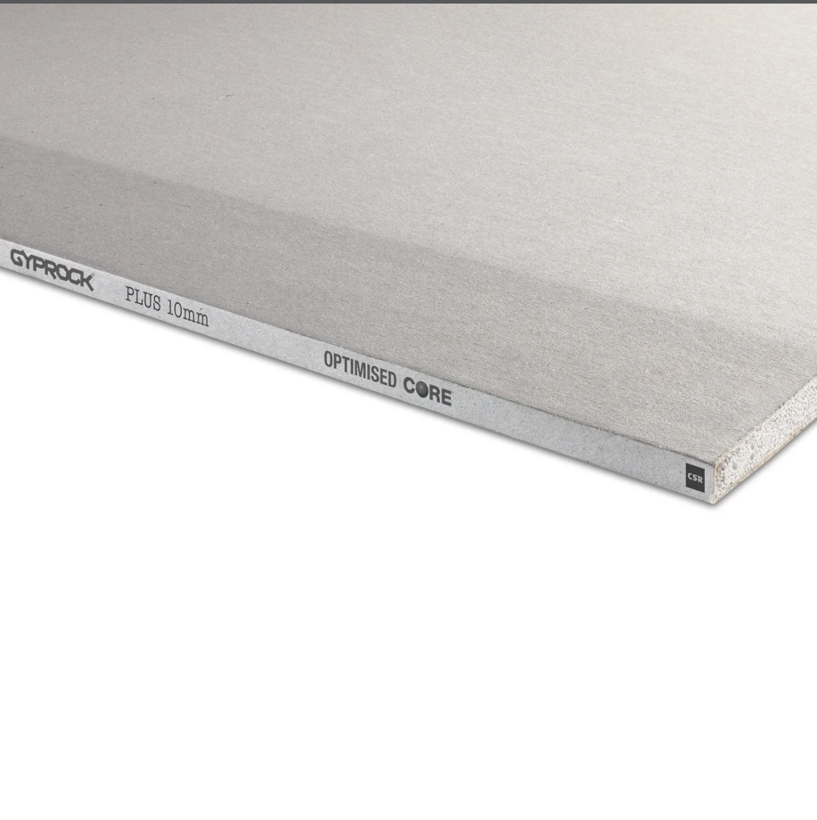 You can see the slight shadow at the front edge of this plasterboard sheet. It is a very slight recess that allows for jointing tape and layers of plaster. If the plasterboard was cut so that this join didn't have a recess on each side, the plaster and tape would not have a recessed area to sit and would consequently bulge out.