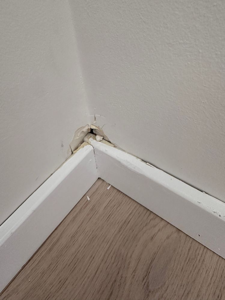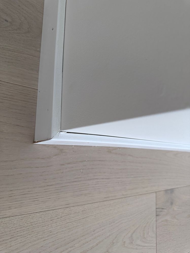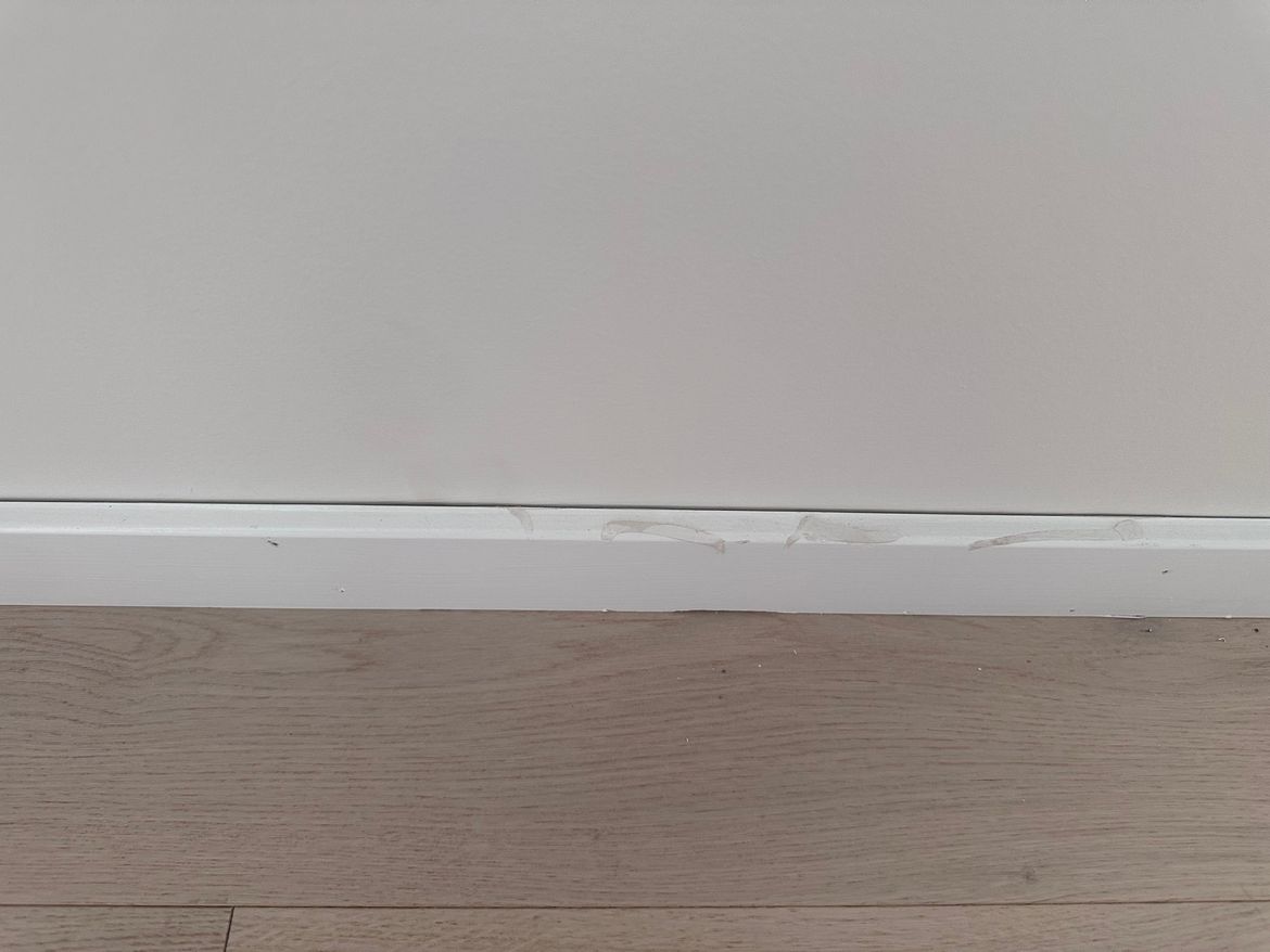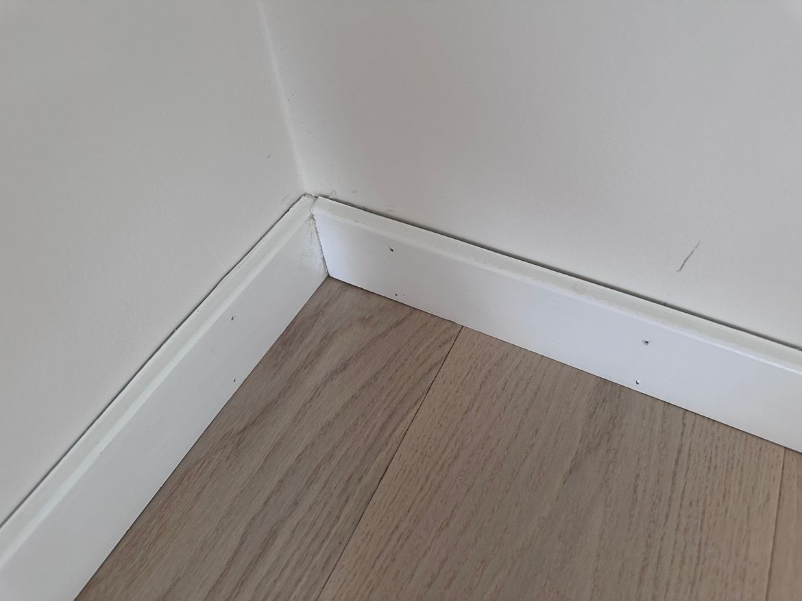 Hi there, I just recently received my new house from my builder. We handed the house to another company to deal with the flooring. However to install the engineered timber flooring they will need to remove the skirting. Hence, after installing back the skirting it looks worn out with gaps, many nail holes and cracked wall/paint.