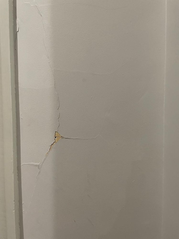 Reading @EricL reply I think he's already on the mark with his recommendations and strategy. It could end up being something simply cosmetic and in need of scraping back the loose cracked material and having it then filled, sanded back, primed and the wall painted. I tend to lean towards this as being the resolve.
